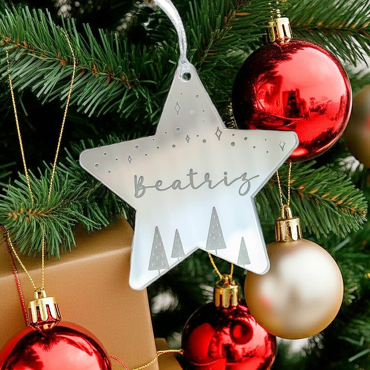 Cada estrela é personalizada com o nome à sua escolha, gravado a laser com precisão e durabilidade. O resultado é uma decoração de Natal personalizada que combina elegância, brilho e exclusividade.